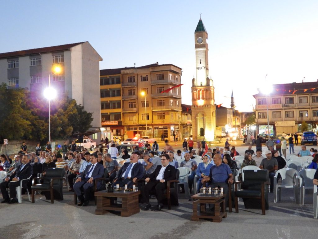 “Orta Asya’dan, Anadolu’ ya uzanan büyük bir tarihin varisleri olarak, devletlerimizi ayakta tutan ve güçlü kılan en büyük etken şüphesiz ki! milletimizin göstermiş olduğu milli duruş ve ortaya koymuş olduğu iradenin varlığı ile mümkün olmuştur. Her dönem de milli duruşu ve ortaya koymuş olduğu iradesiyle dünya tarihine yön veren aziz Türk milleti, devletinin kendisine ihtiyaç duyduğu her an büyük bir milli şuurla göğsünü düşmana siper ederek esarete ve zulme başkaldırmıştır. Aziz Hemşehrilerim; Esarete boyun eğmeyen necip Türk milleti, tarihinin her dönemin de kendisi gibi görünen ve içine sızan hainlerin ve devşirmelerin isyan ve kalkışmalarına şahit olmuştur. Kişiler farklı olsa da senaryolar bir birinin tekrarı gibidir. Orta Asya’dan Anadolu’ya Göktürkler’den Selçuklu’ya, Osmanlı’dan Türkiye Cumhuriyeti Devletine uzanan her süreçte… ne hazindir ki! Türk Milleti hançeri hep sırtından yemiştir. En çokta bu hançer din kisvesi altında sırtımıza maalesef saplanmıştır. Son olarak yüce İslam dinini kirli emellerine alet eden ve emperyalist güçlerin devşirerek beslediği fetö terör örgütünün 15 Temmuz gecesi ortaya koymuş olduğu hain kalkışma bu ihanetlerin bir yenisi olmuştur. Aziz Türk milleti, emperyalist güçlerin uşaklığını yapan ve devletinin sinir uçlarına kadar sızan vatan haini fetö terör örgütünün, 15 Temmuz gecesi Şerefli Türk ordusunun içerisine sızarak büyük Türk milleti üzerine kurduğu kirli tezgahı görmüş ve büyük bir feraset örneğiyle devletinin yanında olmuş, devletin ve milletin bölünmez bütünlüğü için âdete parçalanamaz bir zırh haline bürünerek hainlerin karşında YIKILMAZ BİR KALE olmuştur. Milli Şairimiz Mehmet Akif Ersoy’un ULUS’UN KORKMA NASIL BÖYLE BİR İMANI BOĞAR… dizelerini kendisine şiar edinen necip Türk Milleti, Devletinin ebed müddet varlığı için tankların, uçakların ve silahların üzerine yürümüş ve bu uğurda serden geçen 251 yiğidini Şehit vermiştir. 251 vatan evladını Şehit eden, binlercesini yaralayan ve necip Türk milletinin varlığına tasallut eden fetö terör örgütü, Gazi Meclisimiz ve Genel Kurmay karargâhımız başta olmak üzere birçok devlet kurumuna haince saldırmıştır. Şüphesiz ki o gece tarih yine tekerrür etmişti;