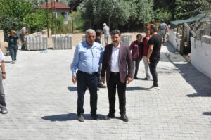 Yerköy Belediye Başkanı Ferhat Yılmaz, Gençoğlu Mahallesi’nde yapımı devam eden kilitli taş çalışmalarını yerinde inceledi.