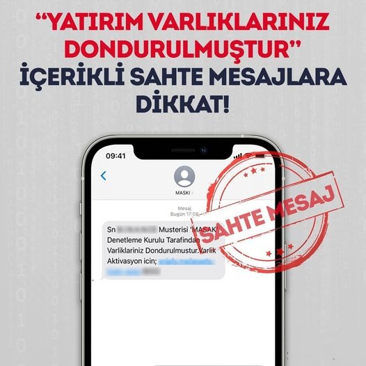 Yozgat Valiliği, “Yatırım varlıklarınız dondurulmuştur, aktivasyon için tıklayın” gibi ifadeler içeren ve resmi kurum isimlerini kullanan sahte mesajların dolaşıma girdiği söyledi.