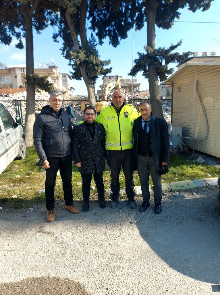 AK Parti Yerköy İlçe Başkanı Hacı Dereli, Hatay’ın Antakya ilçesinde geçici görevle çalışan ilçe trafik memuru Sait İnce’yi ziyaret ederek çalışmalarında kolaylıklar diledi.