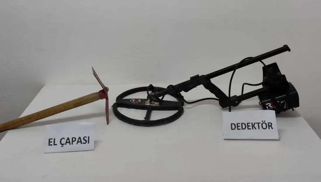 Yapılan operasyonda, M.M. isimli şüpheli şahıs kaçak kazı yaptığı sırada suçüstü yakalanarak gözaltına alındı.