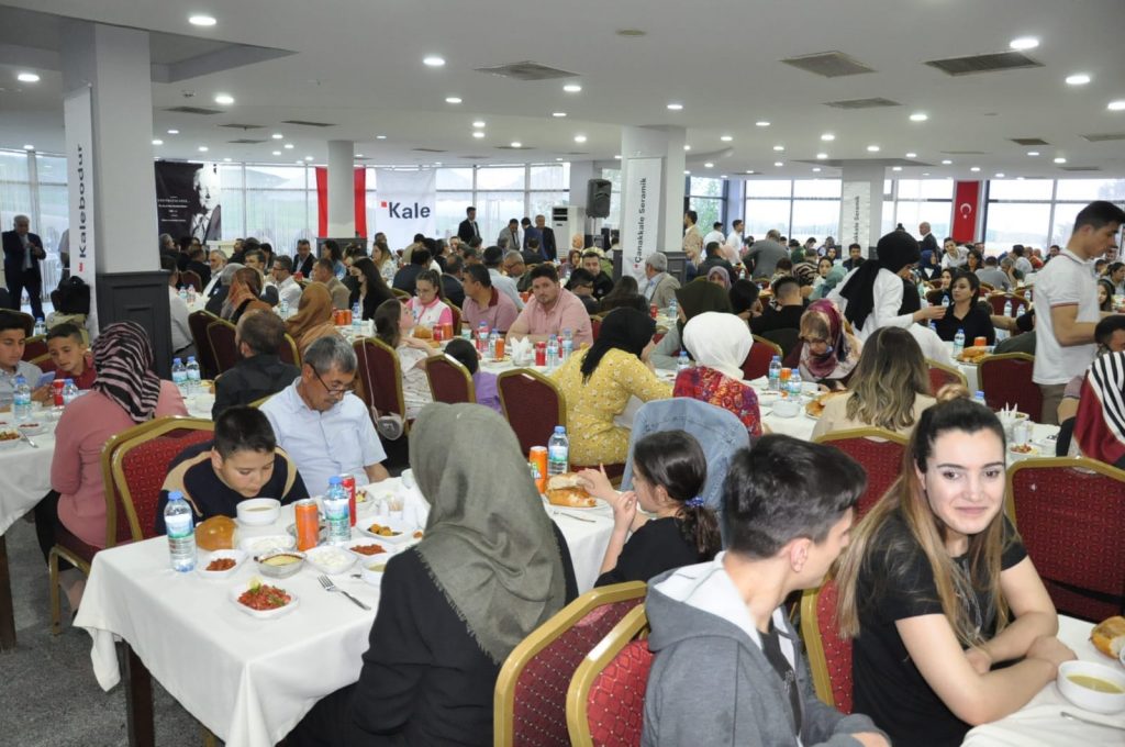 Fatih Mesleki ve Teknik Anadolu Lisesi Uygulama Otelinde düzenlenen iftar programına Kale Grubu Başkanı H. Zeynep Bodur Okyay, Yozgat Valisi Ziya Polat, AK Parti Yozgat Milletvekili Yusuf Başer, CHP Yozgat Milletvekili Ali Keven, Yerköy Kaymakamı Mustafa Karaca, Çiçekdağı Kaymakamı Rabia Naçar, Yozgat Belediye Başkanı Celal Köse, Yerköy Belediye Başkanı Ferhat Yılmaz, Özbağ Belediye Başkanı Rasim Arazay, Aydıncık Belediye Başkanı Ahmet Koçak, Köseli Belediye Başkanı Bekir Yılmaz, Kale Grubu üst Yöneticileri Kaleseramik A.Ş. Genel Müdürü Altuğ Akbaş ve Kalekim A.Ş. Genel Müdürü Timur Karaoğlu ile diğer tüm Üst Yöneticileri, Siyasi Parti Temsilcileri, Muhtarlar, Daire Amirleri, Yozgat Ticaret ve Sanayi Odası Yönetim Kurulu Başkanı Sinan Çelik, Yerköy Ticaret ve Sanayi Odası Başkanı Coşkun Kahraman, Sivil Toplum Kuruluşu Temsilcileri, İç Anadolu Kale Bayileri ve Tedarikçileri, Kale Seramik A.Ş çalışanları ve yaklaşık 750 kişi katılırken, aynı zamanda Yerköy Molla Hüsrev Camii önünde verilen iftar yemeğine de yaklaşık 500 kişi katılım sağladı.
