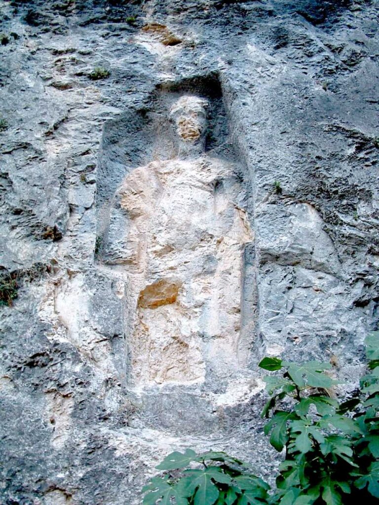Kasabanın güneydoğusunda tabanı kayalık olan ve güneybatısından akan ırmağa sarp kayalar halinde inen tepenin adı Sarıbaba’dır. Söz konusu tepe ve kayalıklar üzerinde MÖ olduğu düşünülen yerleşim izleri bulunmaktadır.