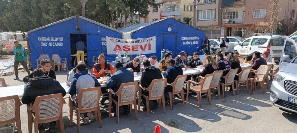 Kırşehir Valisi ve İskenderun deprem koordinasyon merkezi kordinatörü Hüdayar Mete Buhara, İskenderun’da faaliyet gösteren Çiçekdağı Belediyesi tarafından kurulan aşevi ve yardım dağıtım merkezini ziyaret etti.