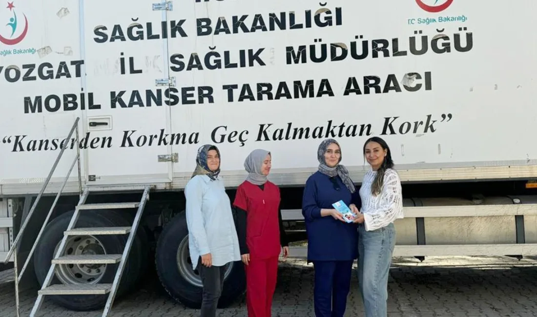 Yozgat İl Sağlık Müdürlüğü bünyesinde hizmet veren mobil kanser tarama aracı, kanserin erken teşhisi ve tedavisi amacıyla vatandaşları bilgilendirmeye devam ediyor.