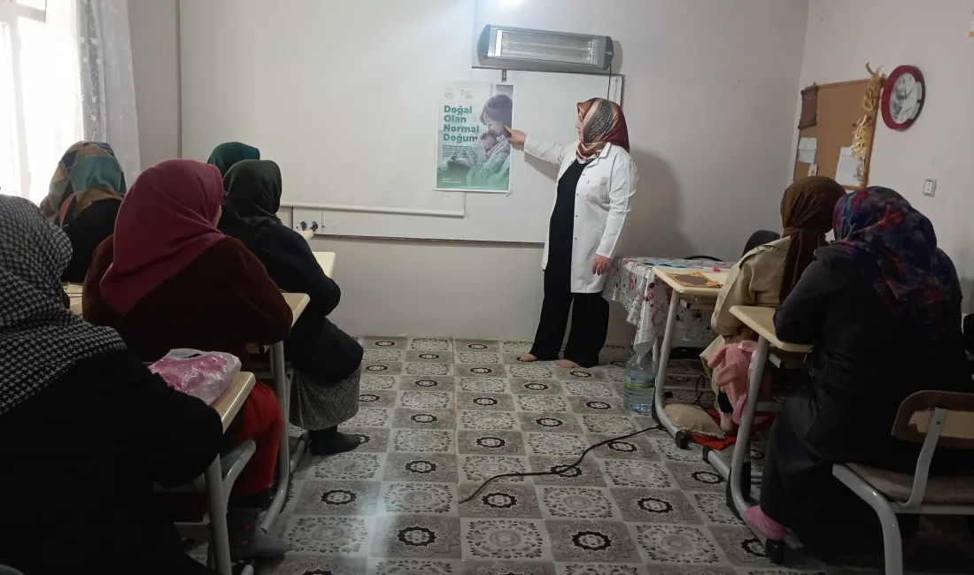 “Normal Doğum Eylem Planı” kapsamında, İlçe Sağlık Müdürlüğü personeli Ebe Nazife Büyükbaş tarafından, tıbbi olarak zorunlu olmadığı sürece sezaryenle doğum yapılmaması gerektiği ve normal doğumun anne ile bebek sağlığı üzerindeki olumlu etkileri anlatıldı.