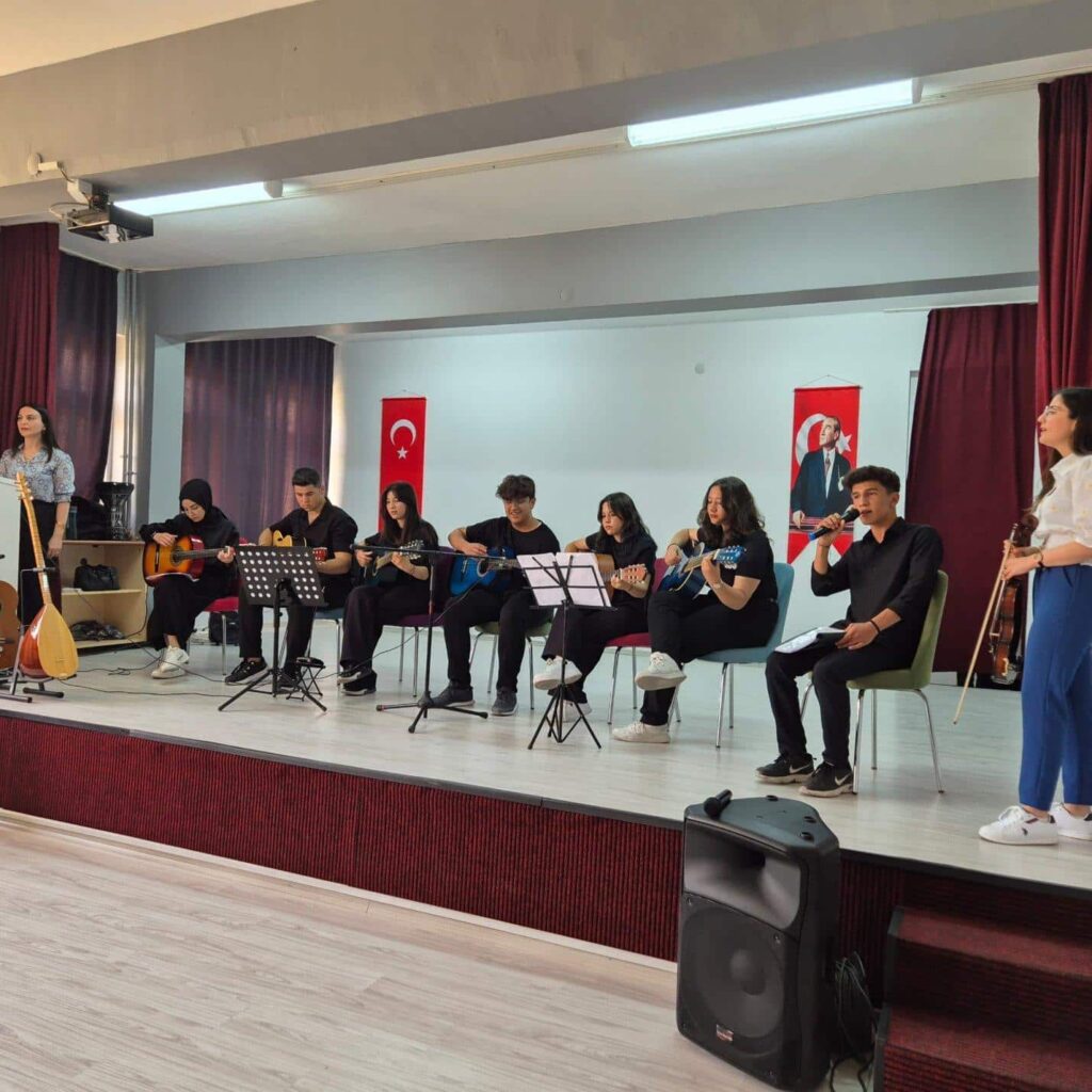 Okul konferans salonunda büyük bir titizlikle hazırlanan ve birçok enstrümanın kullanıldığı programda, öğrenciler keyifli bir müzik şöleni sundular.
