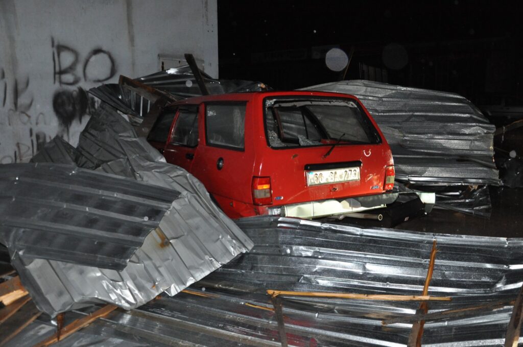 Çatıdan kopan parçalar etrafa saçılırken park halindeki bir araçta maddi hasar meydana geldi. Akşam saatlerinde etkili olan sağanak ve şiddetli rüzgar Sorgun’da hayatı olumsuz etkiledi.