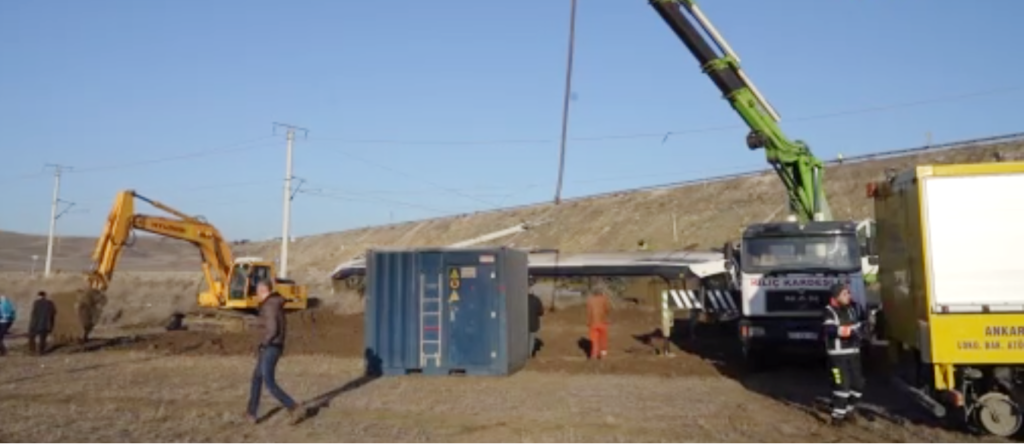 Kırıkkale’de Ankara-Kırıkkale demiryolunda bulunan bir istinat duvarının yıkılması sonucu raylara akan dolgu malzemesine çarpan yük treni raydan çıktı. Kazada lokomotif devrilirken, yaralanan olmadı.