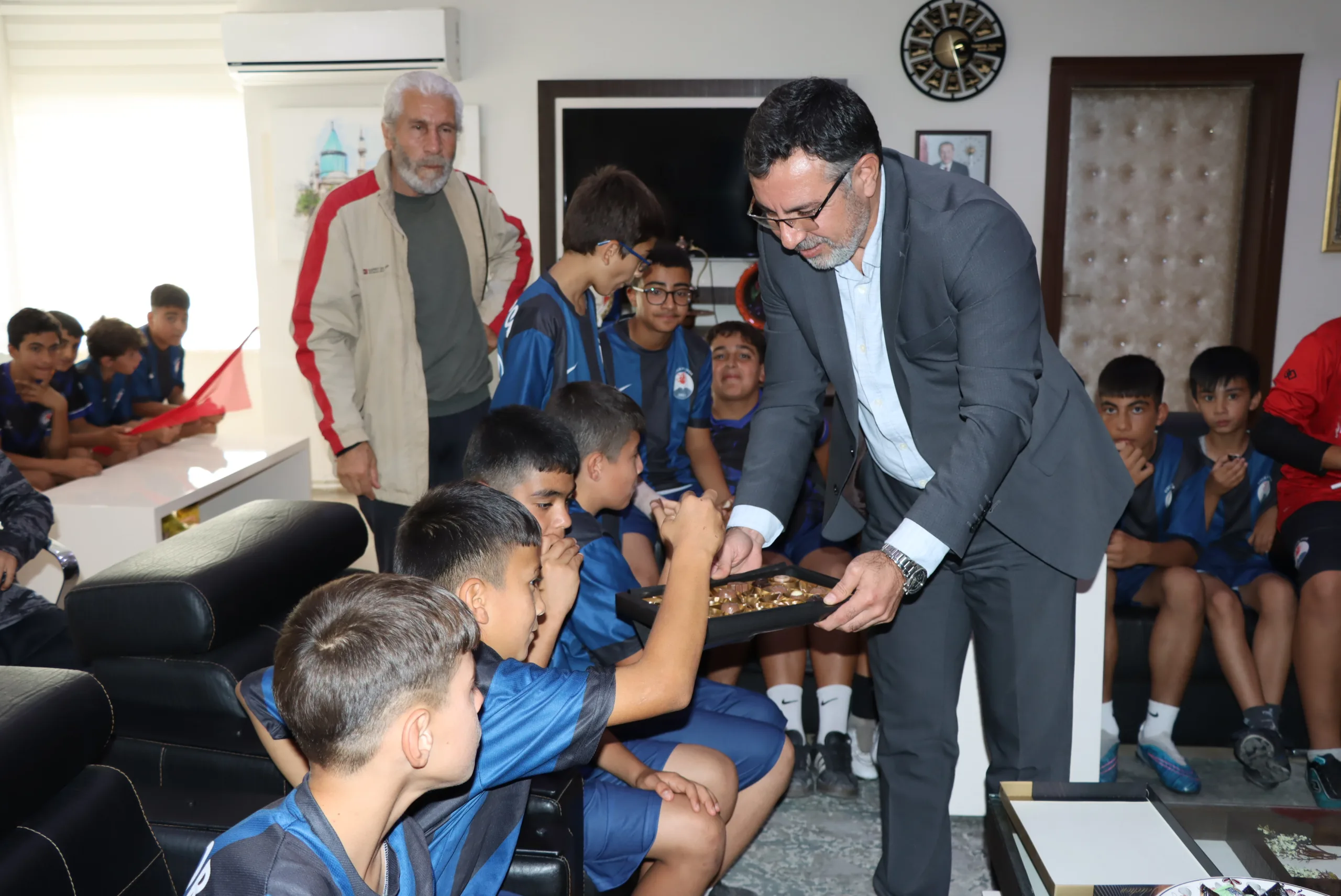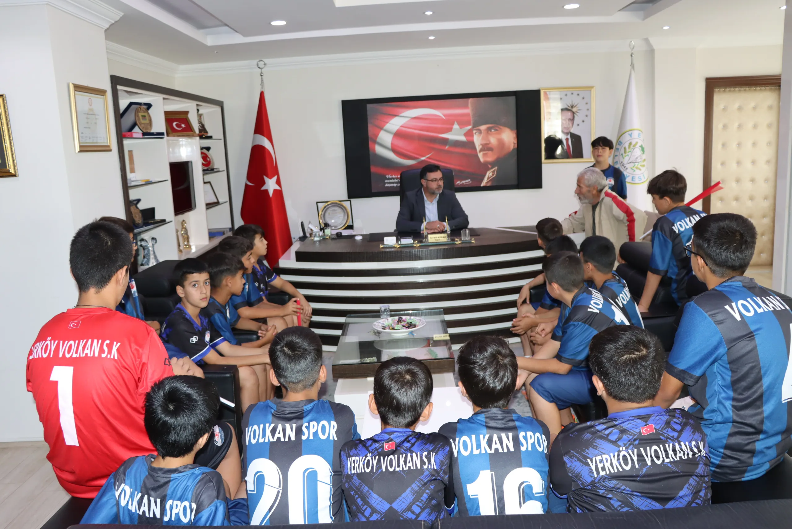 Yerköy Belediye Başkanı Av. Fatih Arslan, ‘Amatör Spor Haftası’ dolayısıyla Yerköy Volkan Spor Antrenörü Mehmet Şaşmaz ve öğrencilerini makamında kabul etti.