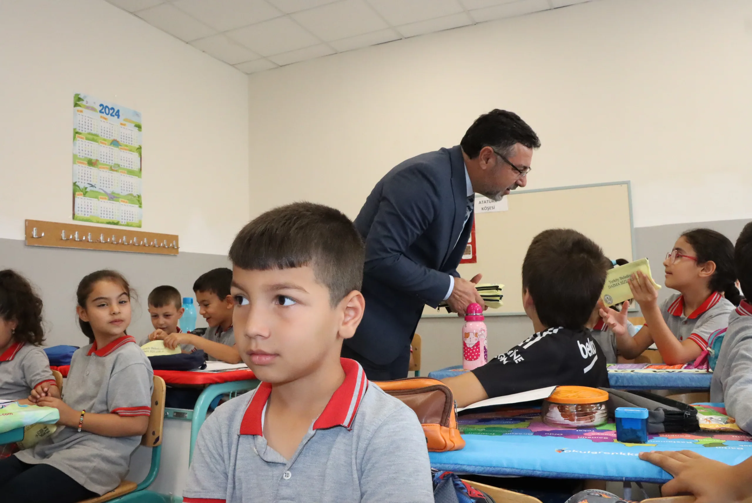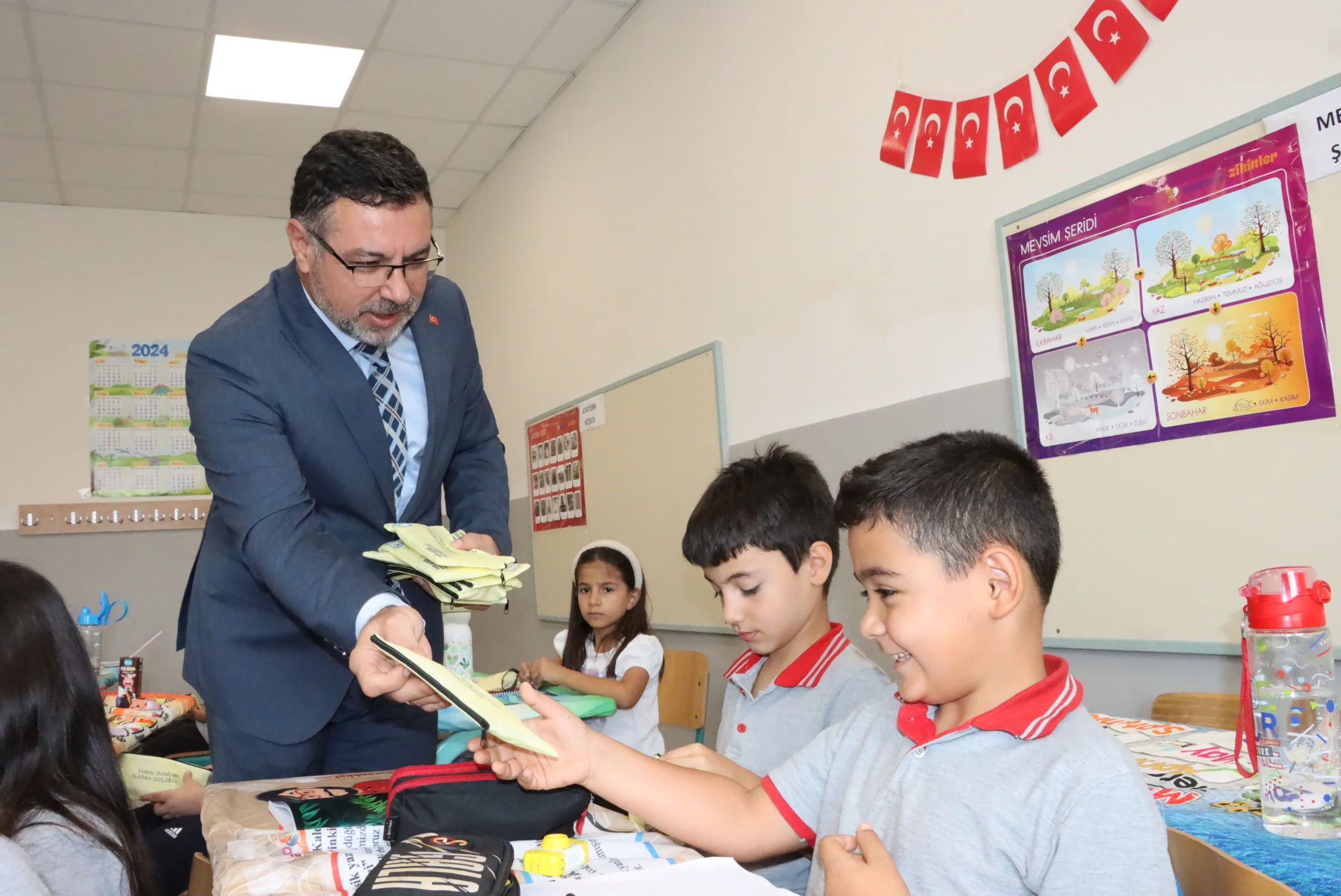 Yerköy Belediye Başkanı Av. Fatih Arslan, 2024-2025 eğitim-öğretim yılının ilk gününde ilçe merkezindeki 2 bin öğrenciye özel olarak hazırlanmış ve içi dolu kalemlikler hediye etti.