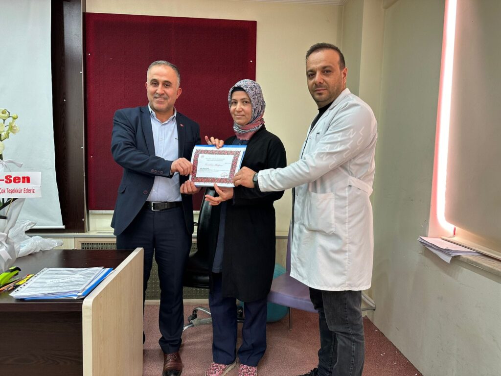 Demir, “Sultan hemşiremiz uzun yıllardır hastanemize ve halkımıza hizmet etti. Bu süre zarfında özverili ve gayretli çalışmasıyla hastalarımıza ve hastanemize önemli katkılarda bulundu. Kendisine bundan sonraki hayatında sağlık ve mutluluklar diliyoruz.” dedi.