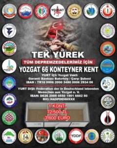 YOZGATLILARDAN DEPREM BÖLGESİNE KONTEYNER KENT KAMPANYASI