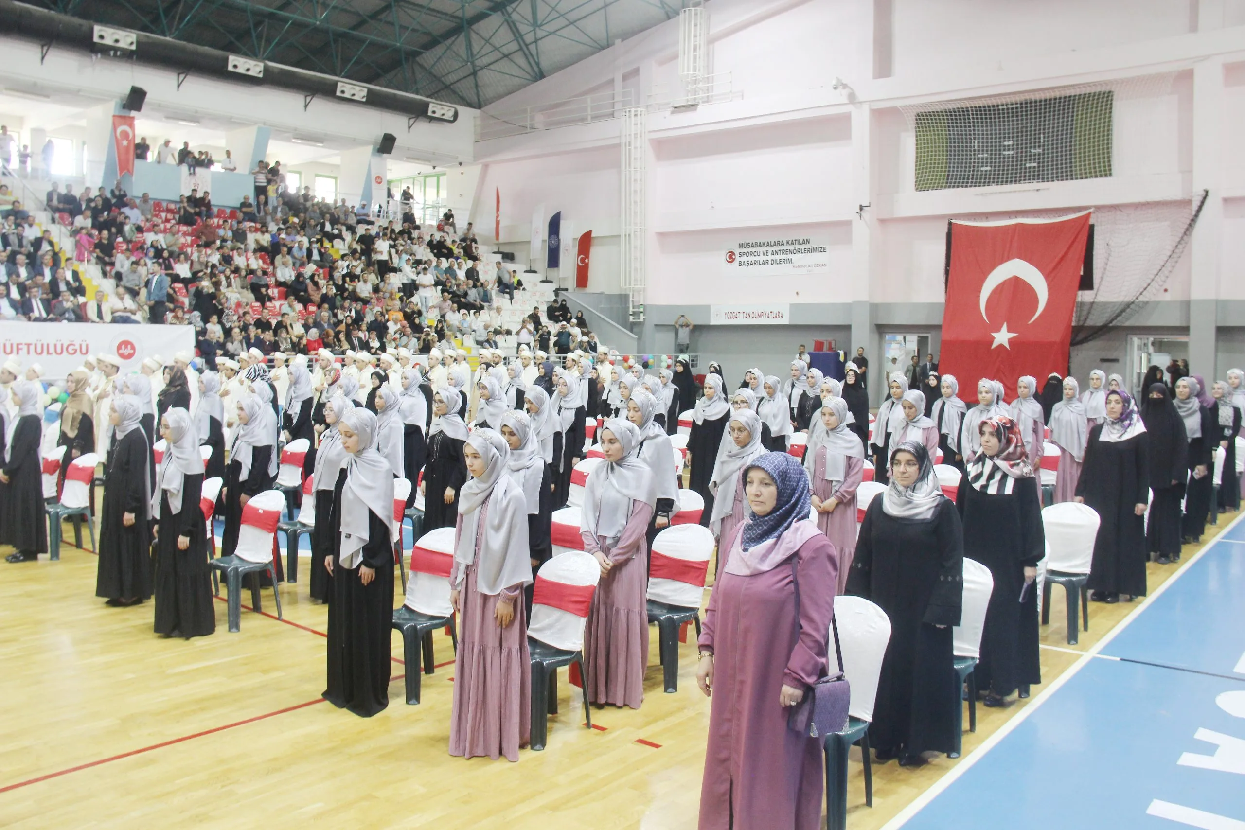 Yozgat İl Müftülüğü, 107 Hafızın İcazetini Verdi: Geleneksel Hafızlık Merasimi Rıza Kayaalp Spor Salonu'nda Gerçekleşti.