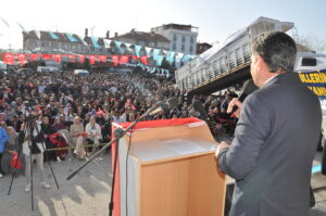 Yerköy Belediye Başkanı ve İYİ parti Başkan Adayı Ferhat Yılmaz, istasyon meydanında düzenlenen açık hava