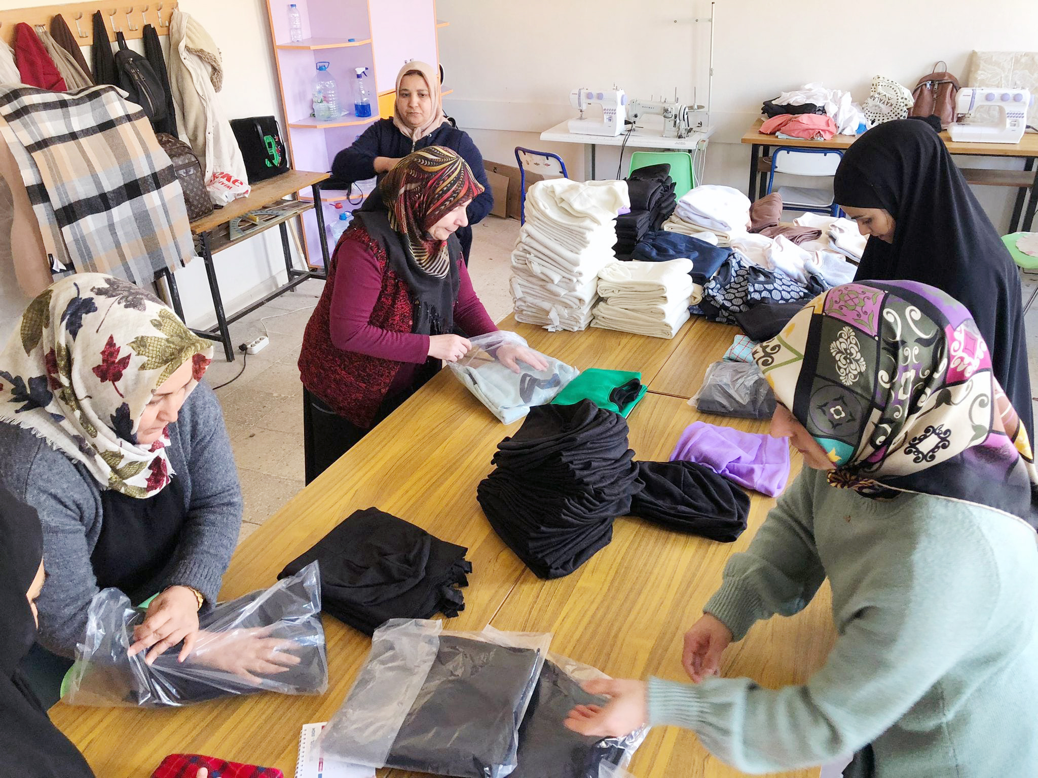 Merkezde, çeşitli kıyafet ve uyku tulumu üretilerek depremzedelere gönderildi.