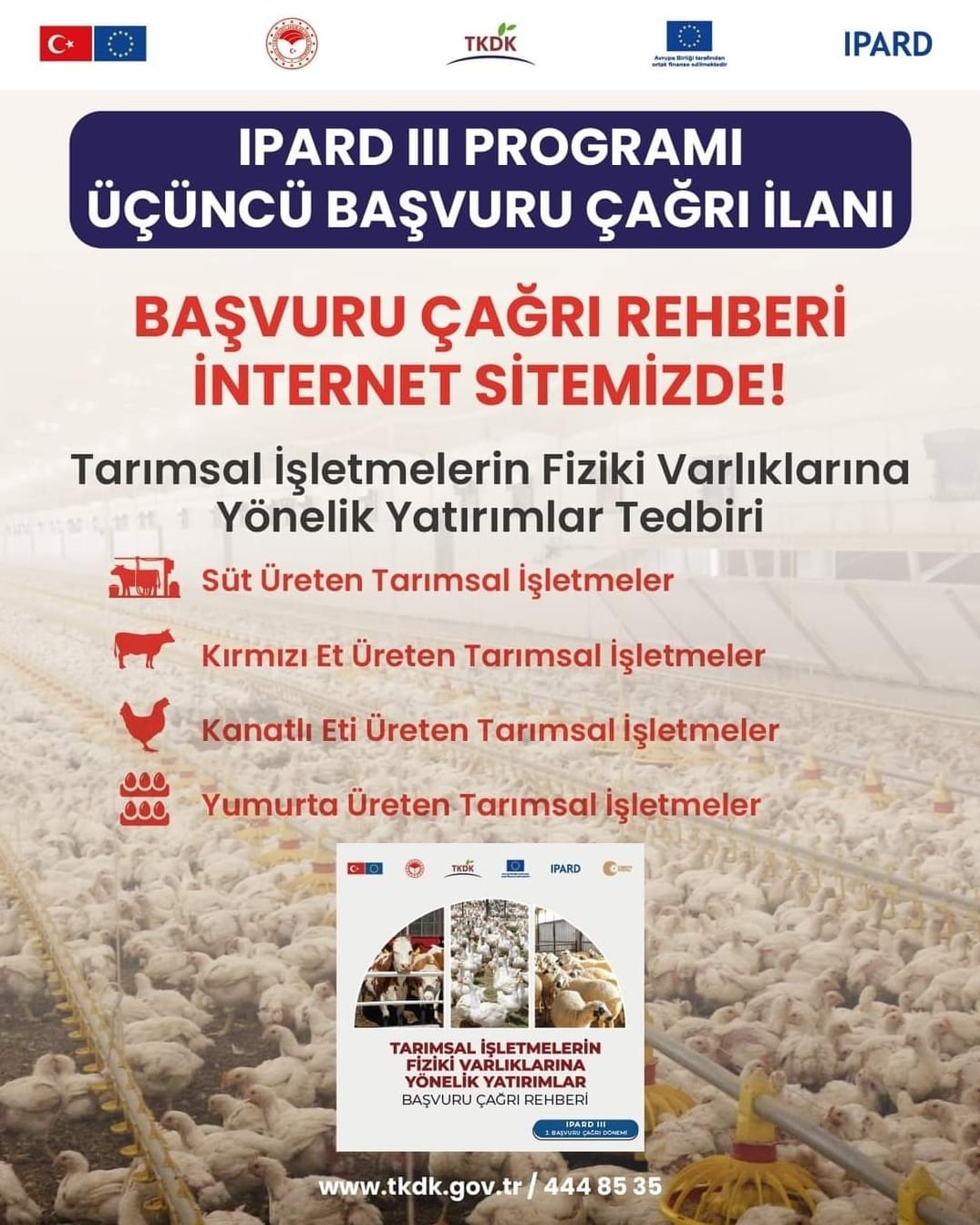 Yerköy İlçe Tarım ve Orman Müdürlüğü, Tarım ve Kırsal Kalkınmayı Destekleme Kurumu’nun (TKDK) 31 Temmuz 2024 tarihi itibariyle Üçüncü Başvuru Çağrı ilanını yaptığını duyurdu.