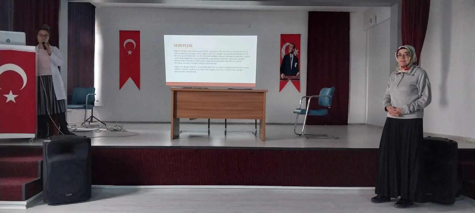 Yerköy İlçe Sağlık Müdürü Dr. Candaş Tan, İlçe Sağlık Müdürlüğü personelleri Uzm. Dr. Uzman Çavdar ve Hemşire Sümeyye Yıldırım tarafından Şehit Mehmet Tez Anadolu Lisesi öğrencilerine yönelik önemli bir eğitim düzenlendi. Eğitim, Akciğer Kanseri Farkındalık Ayı ve Antimikrobiyal Farkındalık Haftası kapsamında gerçekleştirildi.