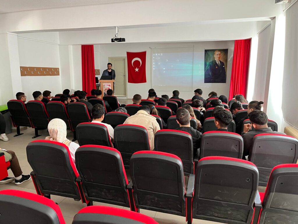 Yerköy Şehit Erhan Ar Mesleki ve Teknik Anadolu Lisesi öğrencilerine İlçe Sağlık Müdürlüğü öncülüğünde teknoloji bağımlılığı eğitimi verildi.