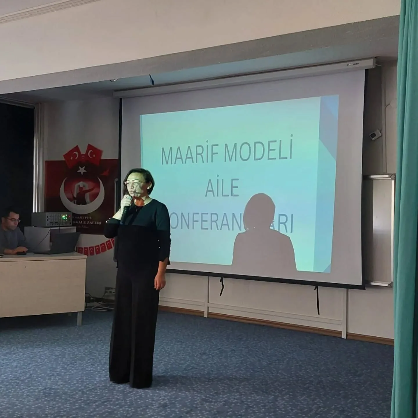 Konferansta konuşmacılardan Lütfi Çalışkan, Halk Eğitimi Merkezinin önemi ve amacını dile getirirken, Betül Ergin maarif modelinin amacı ve işlevi hakkında detaylı bir sunum gerçekleştirdi.