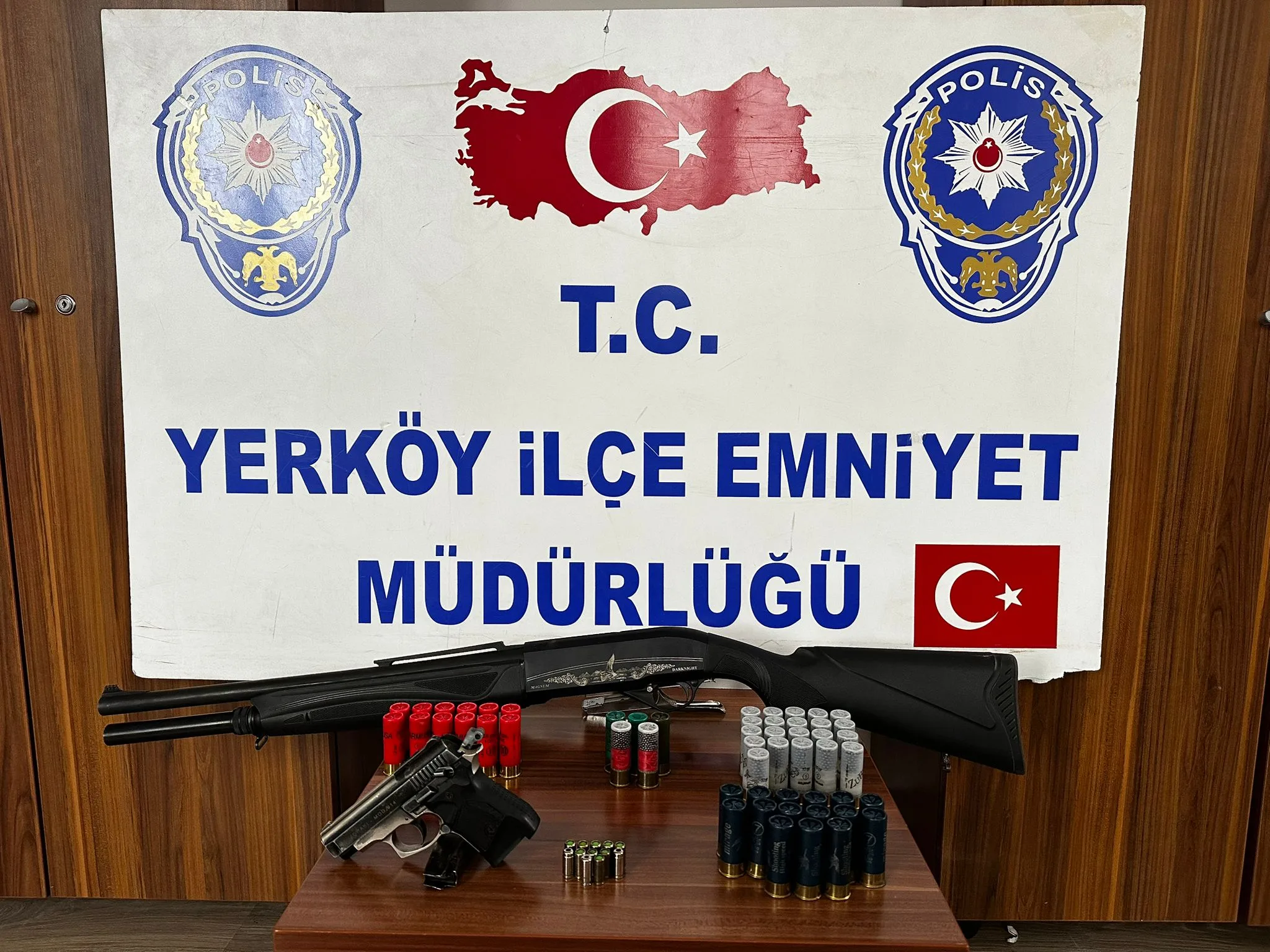 Aynı mahallede yer alan Bekir Bozdağ Bulvarında bulunan bir adresinde yapılan ikinci aramada ise M. K.’ye ait olduğu belirlenen ruhsatsız bir av tüfeği ve 53 adet kartuş bulundu. Ayrıca, faturasız olduğu tespit edilen kurusıkı bir tabanca ile 12 fişek ele geçirildi.