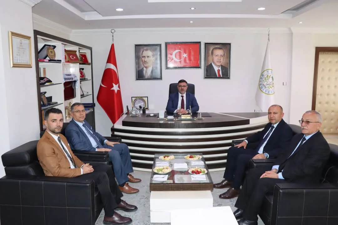 Yozgat İl Milli Eğitim Müdürü İsmail Altınkaynak ve İlçe Milli Eğitim Müdürü Necmettin Sağlam, Yerköy Belediye Başkanı Av. Fatih Arslan’ı makamında ziyaret etti.