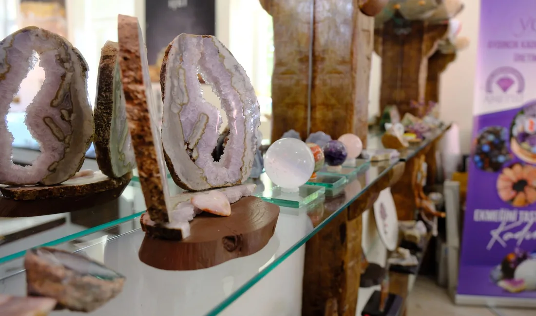 Vali Özkan, Aydıncık’ın bölgesel zenginlikleri ve kadın girişimcilerin katkıları hakkında detaylı bilgi edinirken, kooperatifin takı ve süs eşyası yapımında kullanılan ametist ve yarı değerli taşların önemine de vurgu yaptı.